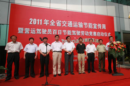 您現在的位置是:首頁 > 集團要聞 節能宣傳周啟動儀式在濟南長途汽車總站隆重舉行 次 集團要聞 發布時間:2011-06-14 09:46:20 節能宣傳周啟動儀式在濟南長途汽車總站隆重舉行 2011年6月11日上午,由山東省交通運輸廳主辦的“2011年全省交通運輸節能宣傳周暨營運駕駛員百日節能駕駛勞動競賽”啟動儀式,在濟南長途汽車總站東廣場隆重舉行。來自省交通運輸廳、省節能辦、市交通運輸局的有關領導出席了活動,并在發車現場向客車駕駛員發放節能駕駛手冊等宣傳資料。集團公司總經理、黨委副書記王謙出席活動并講話。 (資產技術部、組宣部)