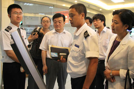 在集團(tuán)公司總經(jīng)理、黨委副書記王謙、黨委副書記楊國強(qiáng)等領(lǐng)導(dǎo)的陪同下,全國青聯(lián)委員會(huì)委員一行先后視察了總站候車大廳、服務(wù)臺(tái)、售票處、檢票處、駕駛員報(bào)班處和安全運(yùn)營管理監(jiān)控中心。在總服務(wù)臺(tái),各位委員對(duì)各項(xiàng)便民創(chuàng)意服務(wù)舉措頗感興趣;在報(bào)班處,他們親身感受了人臉識(shí)別系統(tǒng)、酒精檢測(cè)儀等測(cè)試效果;在安全監(jiān)控中心,聽取了王謙總經(jīng)理關(guān)于3G 視頻監(jiān)控系統(tǒng)運(yùn)行情況的詳細(xì)介紹,并在總站二樓會(huì)議室與集團(tuán)公司及車站領(lǐng)導(dǎo)進(jìn)行了交流溝通。
