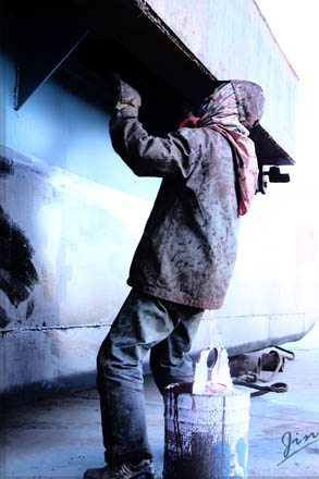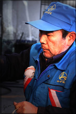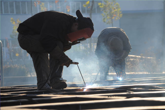 在濟宇汽車修理車間采訪小組成員在現場進行采訪、拍攝