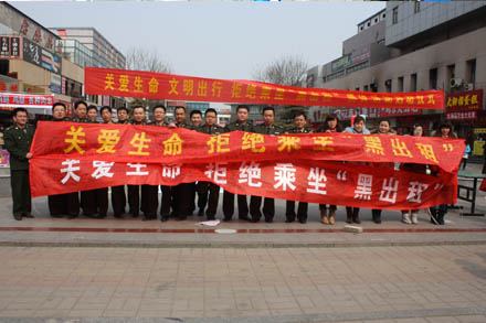 客五公司聯(lián)合長清交通運(yùn)輸局發(fā)起了“關(guān)愛生命 文明出行 拒絕乘坐黑出租的”倡議簽名活動,向大學(xué)生宣傳黑出租危害,倡議抵制乘坐黑出租。濟(jì)南電視臺新聞20分欄目、長清區(qū)電視臺等新聞媒體也對此次活動做了現(xiàn)場采訪報道。