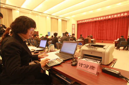 演講按照競崗職位分五組進行,每位競崗人員通過10分鐘的演講來概括自己的基本情況、競崗職位工作的思路和目標以及本人的任職優勢與不足。評委現場實名制打分。經過一天的緊張角逐,至下午3時,競崗演講全部結束,五個崗位前三名選手的成績進行了公布。