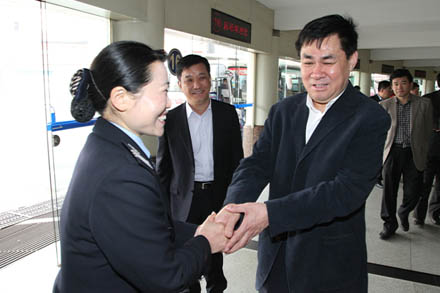 視察過程中,張傳亭與黨的十八大代表、檢票員李文親切交談,鼓勵李文及廣大優(yōu)秀員工繼續(xù)發(fā)揚心系旅客、真情服務的精神,進一步塑造“山東交運”更加亮麗的服務品牌。在安全報班處,張廳長對集團采用人臉識別系統(tǒng)、酒精檢測器、資質(zhì)審查信息庫等有效技術(shù)手段給予了高度評價。在“最美司機”宋洋先進事跡展板前,他勉勵廣大駕駛員要以宋洋為榜樣, 恪盡職守,扎實工作,不斷提高行車安全水平和服務質(zhì)量, 在任何危急情況下,都要確保旅客生命安全。在集團安全運營監(jiān)控中心,張傳亭指示廳有關(guān)負責人員要積極探索高速公路監(jiān)控系統(tǒng)與集團公司監(jiān)控系統(tǒng)的對接工作,爭取早日實現(xiàn)資源與信息共享,使省廳監(jiān)控系統(tǒng)更加掌握一線動態(tài),讓運輸企業(yè)能夠更加及時和直觀地掌握全省的實時路況,確保客運班車運行更加安全、更加科學、更加暢通。