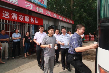 您現在的位置是:首頁 > 集團要聞 集團公司“送清涼”服務隊深入一線 次 集團要聞 發布時間:2013-07-19 17:43:45 集團公司“送清涼”服務隊深入一線 7月8日,集團公司工會與總部黨支部組織54名總部黨員干部組成暑期送清涼服務隊,冒著30多度的高溫,到濟青高速公路刁鎮高速公路客運站,為過往乘客和駕駛員送去清涼的雪糕和消暑的綠豆湯。一上午的時間共為過往近百部客運車輛、2000余名旅客送去了夏日的清涼。集團公司董事、工會主席張志堅、黨委副書記楊國強、紀委書記劉鳳義、副總經理李利、總經濟師馮唯一、財務總監吳乃東等領導帶隊參加了此次“送清涼”活動。 (黨委組宣部、工會)