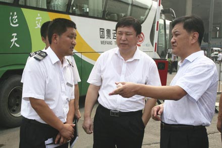 8月14日,集團公司董事長、黨委書記吳宗昌在董事會監事會辦公室主任單天振的陪同下,冒著高溫酷暑,來到其教育實踐活動聯系點——濟南長途汽車總站,實地調研總站黨的群眾路線教育實踐活動開展情況。