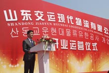 10:58分,啟動(dòng)儀式正式開始。集團(tuán)公司董事長、黨委書記吳宗昌在致辭中指出:山東交運(yùn)現(xiàn)代物流有限公司的開業(yè)運(yùn)營,是山東交運(yùn)集團(tuán)貫徹落實(shí)“十二五”戰(zhàn)略發(fā)展規(guī)劃,實(shí)現(xiàn)產(chǎn)業(yè)“轉(zhuǎn)型升級(jí)”的重要舉措,是集團(tuán)公司積極引進(jìn)戰(zhàn)略投資者,實(shí)施“實(shí)體經(jīng)營”和“資本運(yùn)作”雙輪驅(qū)動(dòng)戰(zhàn)略的重要成果,標(biāo)志著山東交運(yùn)集團(tuán)在跨地區(qū)、跨行業(yè)發(fā)展上邁出了堅(jiān)實(shí)的一步,也必將對(duì)集團(tuán)的做優(yōu)做強(qiáng)產(chǎn)生重大而深遠(yuǎn)的影響。希望公司成立后,中韓雙方把山東交運(yùn)現(xiàn)代物流有限公司建設(shè)成為具有核心競爭力的卓越企業(yè),同時(shí)以合資公司為平臺(tái),本著優(yōu)勢(shì)互補(bǔ)、合作共贏的原則在更廣泛的領(lǐng)域、更深的業(yè)務(wù)層次展開全面對(duì)接和合作,為山東經(jīng)濟(jì)和社會(huì)發(fā)展做出應(yīng)有的貢獻(xiàn)。