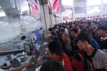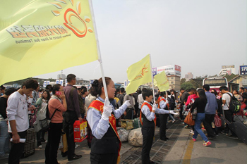 節(jié)日期間,集團(tuán)公司雙節(jié)運(yùn)輸領(lǐng)導(dǎo)小組多措并舉,迅速調(diào)集加班車輛支援熱點(diǎn)線路,在原有運(yùn)力基礎(chǔ)上,投入加班運(yùn)力900部,40500個(gè)客位,開放售票窗口110個(gè),增開臨時(shí)售票窗口50個(gè),在市區(qū)設(shè)置了80多個(gè)聯(lián)網(wǎng)售票點(diǎn),增設(shè)3個(gè)臨時(shí)發(fā)車區(qū),50名武警部隊(duì)?wèi)?zhàn)士、60名泉城義工主動加入旅客運(yùn)輸服務(wù)工作,協(xié)助站內(nèi)導(dǎo)乘、維持秩序,使旅客能在較短的時(shí)間內(nèi)購票、檢票、乘車。