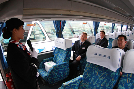 考核組分別以聽取匯報、考察現場、查閱資料的形式,對兩家單位的文明創建工作進行了檢查指導。在濟宇高速,第五考核組現場視察了濟宇高速文化展室、車場建設、駕駛員休息室等,登上“宋洋班車”聆聽了宋洋同志先進事跡、“宋洋車隊”特色服務及濟宇高速的車廂文化建設情況;在濟南聯運總公司,第四考核組相繼視察了企業文化展板,聽取了總公司及各部門介紹,參觀了圖書閱覽室,并深入到公司現場進行參觀指導。通過認真、細致的考核,考核組對濟宇高速、濟南聯運總公司文明創建工作均給予充分肯定,對創建工作中的亮點給予了高度評價。集團公司黨委副書記楊國強陪同檢查,要求各申報單位要再接再厲,結合正在開展的黨的群眾路線教育實踐活動要求,以文明創建工作為契機,通過加強組織和制度建設,開拓思路,創新形式,將文明創建工作與單位生產經營融合得更加緊密,提質增效,推動集團公司各項工作再上新臺階。