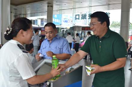 7月23日、28日,為確保暑期安全生產(chǎn),保障職工身心健康,集團(tuán)公司黨委組織開(kāi)展了為一線(xiàn)送清涼活動(dòng)。集團(tuán)領(lǐng)導(dǎo)班子成員帶領(lǐng)總部部分黨員干部,到集團(tuán)相關(guān)產(chǎn)業(yè)一線(xiàn)崗位慰問(wèn)在酷暑下奮戰(zhàn)的廣大干部職工和駕乘人員,為他們送上冷飲和礦泉水,讓他們感受到組織的關(guān)愛(ài)和夏日的清涼。