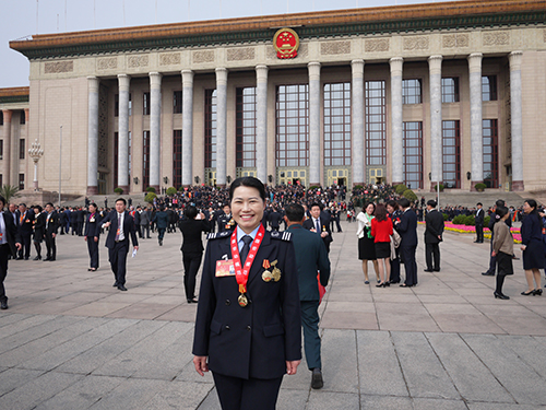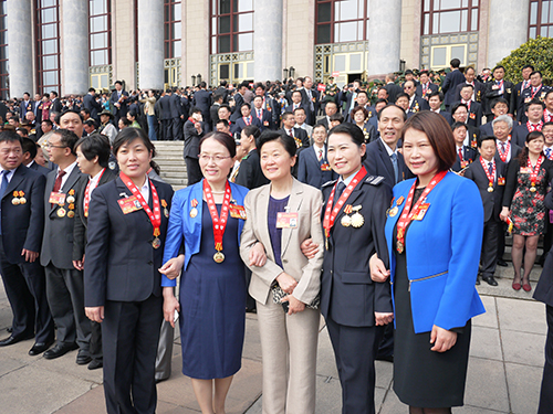 山東交運(yùn)濟(jì)南長(zhǎng)途汽車總站總服務(wù)指導(dǎo)師李文與全國(guó)其他勞模在北京人民大會(huì)堂前合影。