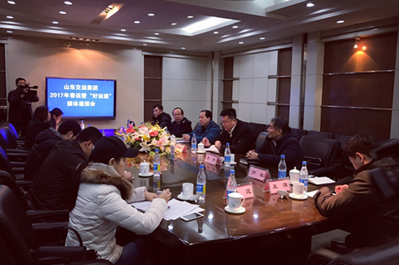 1月12日,山東電視臺、齊魯電視臺、濟南電視臺、《大眾日報》、《齊魯晚報》、《濟南日報》、《濟南時報》、《山東交廣》、《濟南交通廣播》、齊魯網、大眾網、鳳凰網等30家新聞媒體記者出席了“山東交運集團2017年春運暨‘好運通’媒體通報會”。會上通報了集團公司春運期間各項運力準備、安全措施、技術維護、創新服務等系列便民利民舉措并現場演示了“好運通”微信公眾平臺應用方式。通報會由集團公司董事、黨委副書記楊國強主持,黨委組宣部、客運經營部、客運管理部、安保部、資產技術部、汽車總站等部室和單位新聞發言人參加了此次會議。