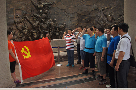 您現(xiàn)在的位置是:首頁 > 汽修三產(chǎn)產(chǎn)業(yè) 參觀紅色革命教育基地接受愛國主義傳統(tǒng)教育 次 汽修三產(chǎn)產(chǎn)業(yè) 發(fā)布時間:2014-07-04 11:09:09 參觀紅色革命教育基地 接受愛國主義傳統(tǒng)教育 ――實業(yè)公司黨支部赴臺兒莊參觀學(xué)習(xí) 6月27日,實業(yè)公司黨支部組織全體黨員赴臺兒莊大戰(zhàn)紀(jì)念館參觀學(xué)習(xí)。在紀(jì)念館內(nèi),全體黨員認(rèn)真觀看了臺兒莊戰(zhàn)役介紹,追憶了革命先烈的豐功偉績,并在莊嚴(yán)的紀(jì)念館前重溫了入黨誓詞。通過參觀學(xué)習(xí),讓全體黨員接受了一次深刻的愛國主義教育,上了一次生動的黨課,在思想上進(jìn)行了一次洗禮,進(jìn)一步增強(qiáng)黨員的自覺性和先進(jìn)性。 (劉海紅)