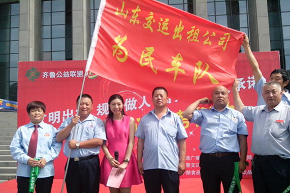 6月3日上午,山東交運出租公司參加了由山東交通廣播、齊魯電臺、山東商報、濟南交警主辦的“文明行車、規矩做人、百萬車友共承諾”的齊魯公益大聯盟“愛心助考”活動啟動儀式。